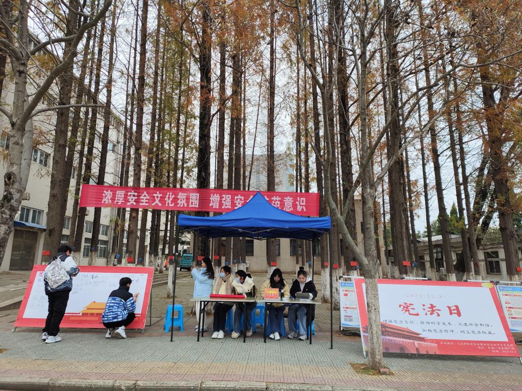 为进一步提高安科学子法律意识,引导学生深入了解宪法,尊崇宪法,增强法治观念,推进校园法治文化建设。12月4日人文学院于东区小广场开展“增强法治观念,推进依法治国”国家宪法日主题宣传活动。