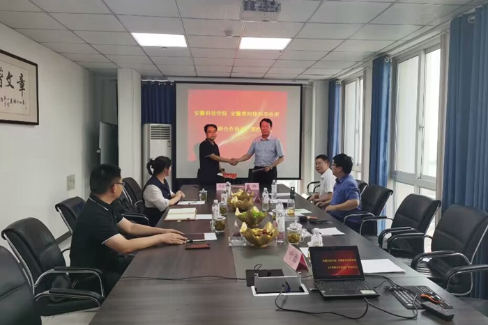 8月30日下午,为贯彻落实中共中央办公厅、国务院办公厅联合印发的《关于加强新时代法学教育和法学理论研究的意见》文件精神,强化法学实践教学,深化协同育人,推动与法律实践部门合作,拓展法科生实习就业渠道,人文学院副院长李晓东、副院长牛永辉、法学系主任张晓云一行赴安徽淮河律师事务所签署产学研合作协议,并举行了授牌仪式。安徽淮河律师事务所主任张林、副主任尹现波、合伙人马龙、张小曼,工会主席叶磊等出席签约仪式。