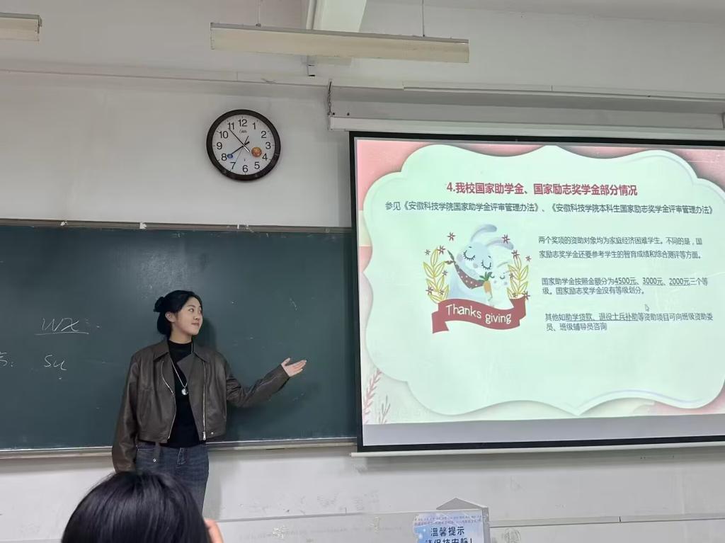 在2023年校内奖助资金发放之际,为引导学生认真学习国家关于家庭经济困难学生奖助学金有关政策规定等文件精神,加强政策的宣传和解释工作,教育受助学生合理规划奖助学金的使用,引导在校大学生树立科学、理性、健康的消费观,人文学院各班级召开了专题班会。