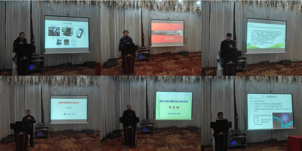 中国科学院合肥物质科学研究院黄青研究员,安徽大学吴旺宝教授,砀山县亲耳菌业有限公司蒋鹏总经理,拼搏平台_拼搏网页版何华奇副教授、李正鹏教授、蒋圣娟教授等九位专家,分别做了“灵芝多糖和三萜成分光谱检测方法研究”、“金寨县灵芝种质资源调查及育种研究”、“砀山县果枝木耳扶贫经验交流”、“安徽省食用菌产业扶贫经验交流”、“羊肚菌栽培高产环境因子研究”、“紫色马勃多糖抗氧化活性研究”、“猴头菇外泌体初步研究”等专题报告。