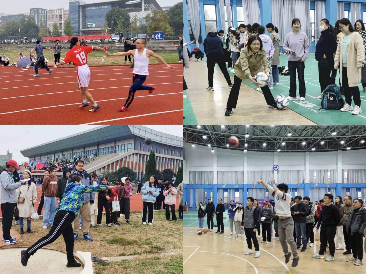 4×;100米接力赛中,默契在他们手中传递,小小的接力棒是团结的释义。由何庆元、王海波、李先强、张越四位博士教师组成的4×;100米接力团队荣获桂冠。 小小的乒乓球,轻轻握在手中,飞向地面再弹起,随着最后一声脆响,苗永美老师在对地反弹乒乓球项目中摘得桂冠。 篮球场上,手起球落,完美弧线,不畏他人,所向披靡。最终,张越老师获得男子三分投篮的第三名。仿保龄球的比赛现场,老师们从三尺讲台到运动赛场,一改往日严肃,在赛场上尽情释放自己的童心,激情四射。刘汉珍老师表现出色,获得第三名的好成绩。 100米的跑道上,老师们正在飞驰、加速、超越、冲刺,一步步靠近胜利的曙光。何庆元老师和李先强老师分别荣获男子100米第三名和第五名,张文文老师荣获女子100米第五名的好成绩。 跳绳比赛中,赵干老师全神贯注,双手紧握跳绳,跳出了第三名的好成绩。飞镖赛场上,苗永美老师和姜毅老师分别获得第七名和第八名的好成绩。