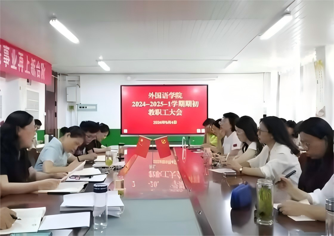 9月4日下午,外国语学院在学知楼五楼会议室召开2024-2025学年度第一学期期初全体教职工会议。外国语学院党政领导和全体教职工参加会议,会议由党委书记蔡为青主持。