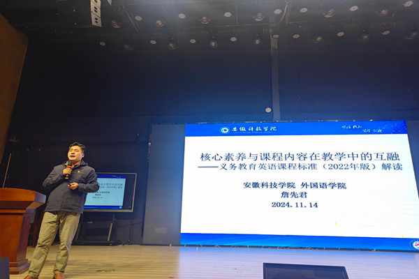 11月14日下午,农村基础英语教育与教师发展科研团队联合大学英语第二教研室教工党支部,赴凤阳县工人子弟小学开展“携手共进 启航英语之旅”主题活动。此次活动旨在为一线小学教师释疑解惑新课标,为小学家长提供英语启蒙教学方法。