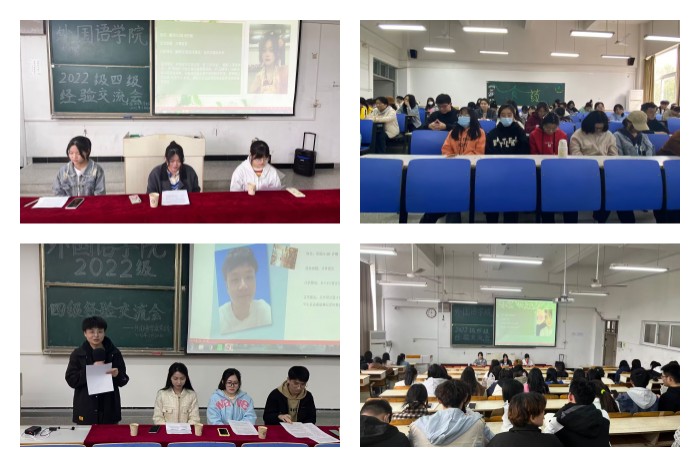 翻译专业在求知楼A203教室举行。李妞妞表明听力和作文要分段作答,平时注意积累高级词汇,鼓励同学们树立良好的心态积极应考;余忆敏同样推荐了使用英语学习软件背单词,强调听力练习,提出精听和泛听相结合,通过阅读外刊增加词汇量;施怡则强调了做真题写作文的重要性。