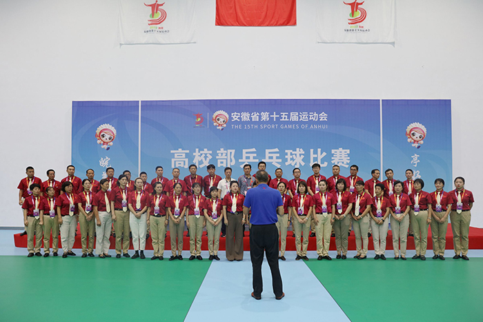 8月26日下午,安徽省第十五届运动会高校部乒乓球比赛组委会临时党支部在拼搏平台_拼搏网页版凤阳校区西区体育馆开展主题党课活动。主题党课由比赛仲裁、临时党支部书记秦纪强教授主讲,全体裁判员参加。
