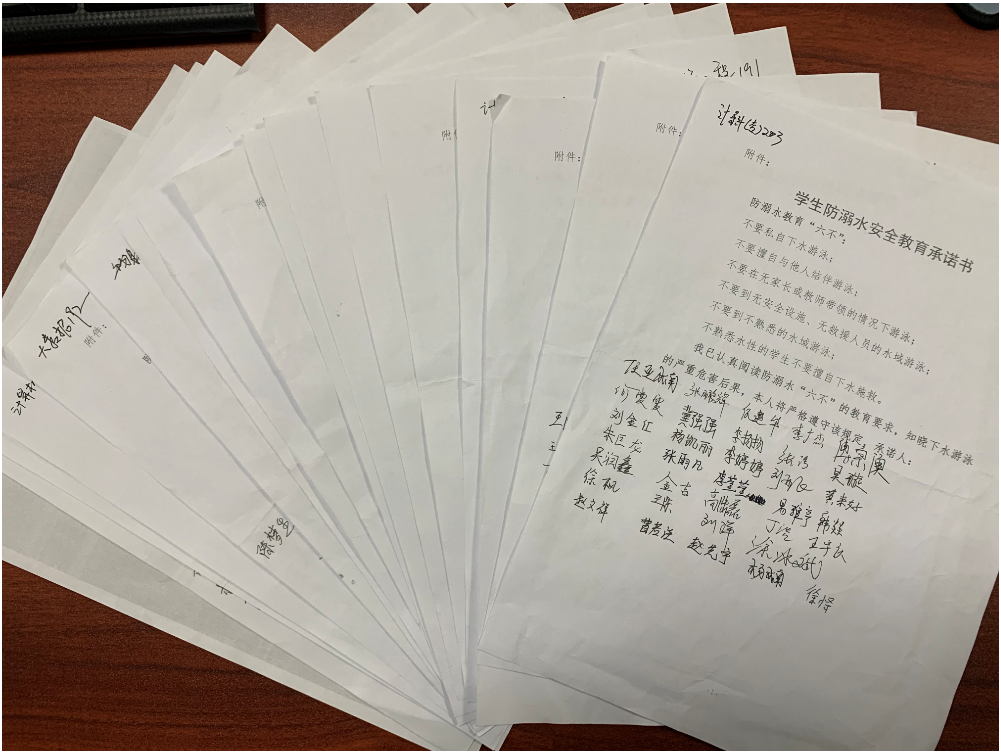 开展防溺水承诺活动。组织学生签订防溺水“六不要”安全承诺书,做到人人参与,不漏一人。
