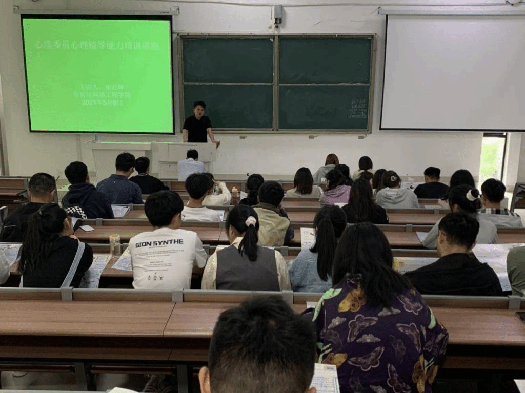 5月6日,信息与网络工程学院在致知楼C111教室召开关于心理委员心理辅导能力培训讲座。会上,崔北坤老师围绕近期心理工作进行了总结,就下一阶段重点工作进行了布置,并教授各位心理委员如何关注好特殊学生、做好四类学生排查工作以及掌握心理调节等方面基本工作技能和方法。在会后,崔北坤老师叮嘱各位心理委员要切实深入班集体之中,及时准确地了解班级同学的心理状况和思想动态,发挥班级与学院之间的桥梁作用,努力成为老师的得力助手和同学们的知心人。