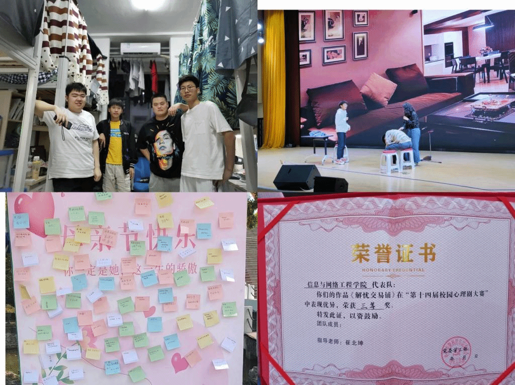 5月1日前,信息与网络工程学院参加拼搏平台_拼搏网页版第十四届校园心理剧大赛,本次比赛以学院为单位,共有6支队伍参加了本次比赛。在比赛过程中,各队参赛作品涵盖了家庭亲子关系、心理健康咨询、学业问题、情感与恋爱等方面,参演同学将自身的真实情感融入所扮演角色之中,用极具感染力的语言,丰富的肢体动作将生活学习中遇到的问题还原再现,并通过剧情再现的方式告诉同学如何化解心理问题。最终,我院获得本次心理剧大赛三等奖的成绩。
