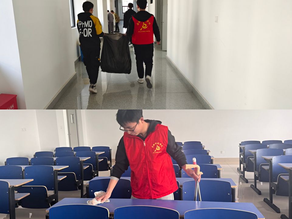 信息与网络工程学院志愿服务系列报道之二:开展“志愿我先行,教室大扫除”活动
