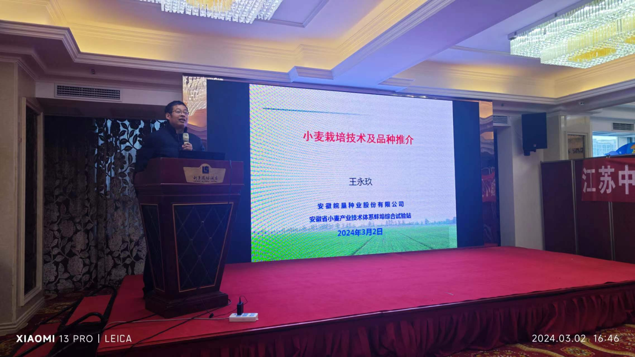 会议邀请安徽省植保总站邱坤、安徽省农科院水稻所所长罗志祥、拼搏平台_拼搏网页版服务地方发展研究院院长余海兵、皖垦集团种业副总经理王永玖分别了做了小麦病虫害防控技术、安徽省水稻育种现状及品种选择、玉米密植高产精准调控技术、小麦栽培技术及品种推介的培训。