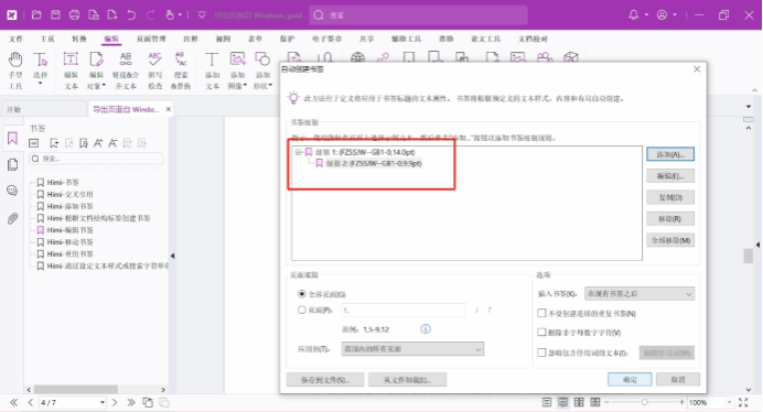 如果不需要修改删除,则点击“确定”,系统会默认识别选中的字体属性,所有使用指定字体和字号的文本将会被自动设置为书签标题。