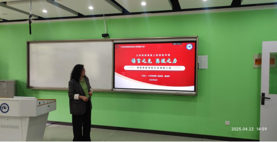 4月22日下午,外国语学院大学英语第二教研室夏俊萍老师在求知楼B306智慧教室举办了一场题为《语言之光 思政之力》的讲座。第二教研室全体教师参与了活动。此次讲座聚焦大学英语课程思政的创新实践与融合路径,深度剖析了数智时代的教育变革浪潮中,大学英语课程如何通过语言教学实现价值引领,培育具有家国情怀与国际视野的新时代人才。