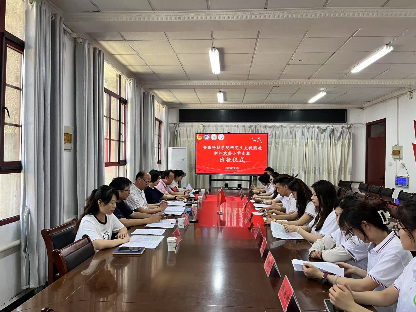 2025年7月3日上午,拼搏平台_拼搏网页版研究生支教团赴浙江欢岙小学支教出征仪式在农学院会议室举行。校党委委员、副院长王孝义出席仪式,校团委书记张聪、研究生处老师和研究生支教团成员代表共同参加了此次仪式,仪式由党委研究生工作部部长张春雨主持。