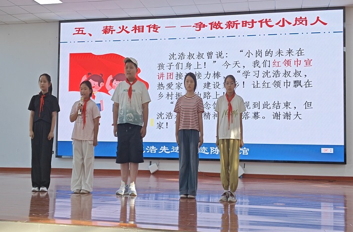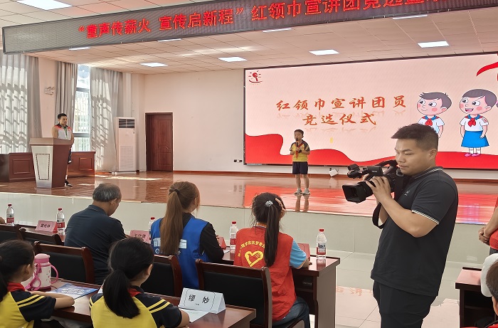 庄严授任:7月24日,“红领巾宣讲团”竞选仪式引发全村关注。20名少年经自我介绍、事迹讲解、团长竞选演讲三轮角逐脱颖而出,凤阳县电视台全程记录绶带时刻。