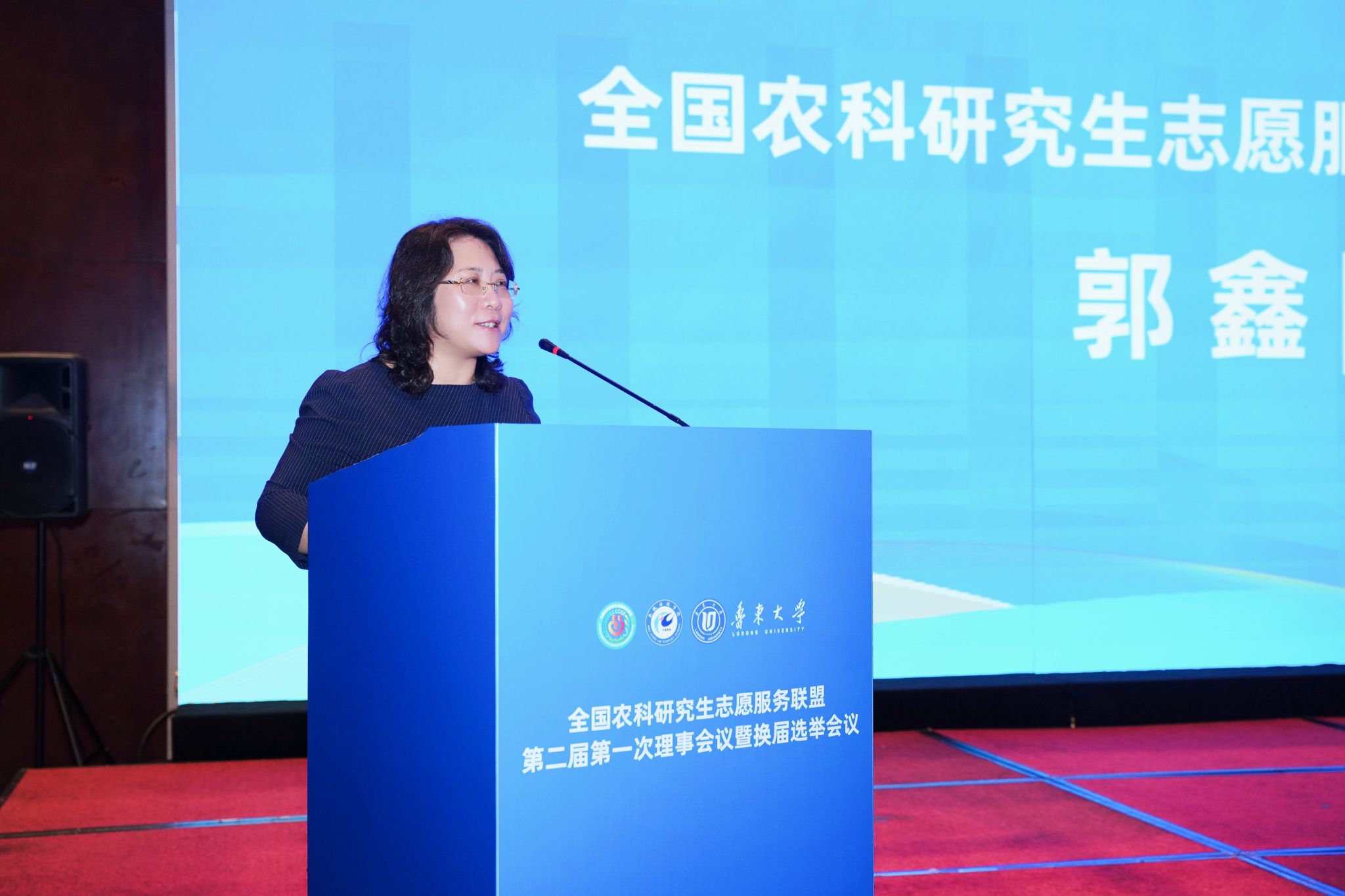 郭鑫发表重要讲话,她对联盟自2020年成立以来的工作成果给予高度评价,指出联盟第一届理事会在农科研究生志愿服务品牌打造、乡村振兴实践活动开展、成员单位协作深化等方面取得的显著成效,充分展现了农科研究生服务国家战略、助力农业发展的责任与担当。她强调,乡村振兴是国家重大战略任务,而农科研究生作为农业领域的青年人才力量,拥有专业知识扎实、创新思维活跃的突出优势。联盟要进一步发挥桥梁纽带作用,推动农科研究生将专业所学与基层需求深度结合。一方面,要深化产学研融合,积极搭建高校、科研机构与地方农业产业的合作平台,引导农科研究生在关键领域开展志愿服务,把科研成果转化为助力乡村振兴的实际成效;另一方面,要加强联盟自身建设,完善工作机制,强化成员单位间的协同合作,丰富志愿服务形式与内容,提升志愿服务的专业性、针对性和实效性,让联盟成为培养农科研究生实践能力、激发青年服务热情的重要载体,为农业强国建设注入更多青春力量。