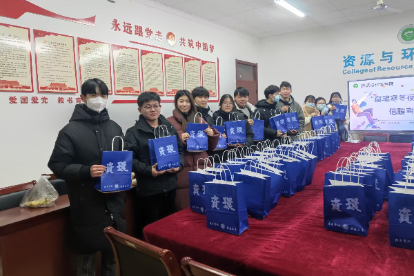 又逢一朝寒冬至,又是一年考研时。为鼓励我院考研学子坚定信念,沉着应战,12月15日,资源与环境学院在东办公楼学院会议室为考研学子发放考研大礼包,为“研”途上的他们提供暖心服务并送去美好祝愿。资源与环境学院党委副书记沈树周和专职辅导员王丽萍参加了此次活动。