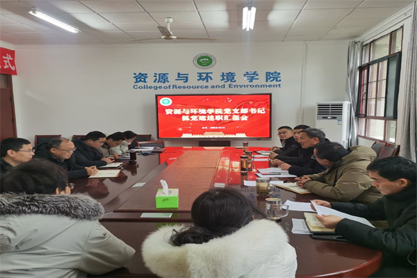 1月5日上午,为深入学习贯彻习近平新时代中国特色社会主义思想,推动全面从严治党向基层延伸,促进基层党的建设全面进步.根据《中共拼搏平台_拼搏网页版委员会关于开展2021年度基层党组织书记抓党建述职评议考核工作的通知》文件精神要求,资源与环境学院党委于学院会议室开展2021年度党支部书记抓党建述职评议会,学院党委委员、党支部书记、分团委副书记、校党代会代表、教(工)代会代表等参加会议,会议由党委书记李孟良主持。