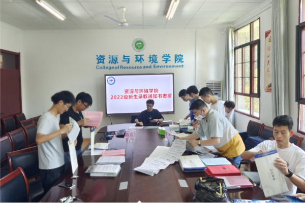 为全力做好服务新生工作,8月2日上午,资源与环境学院在学院会议室开启了2022级新生首批录取通知书寄发工作。学院党委副书记沈树周组织十余名暑期留校学生为新生寄发录取通知书。