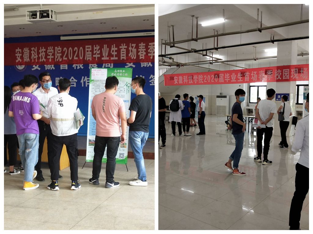 在龙湖校区知味园B楼,安徽丰原集团、凯胜科技股份有限公司蚌埠华益分公司、安徽佳先功能助剂股份有限公司、安徽中旭环境建设有限责任公司、蚌埠市神舟机械有限公司等5家本地用人单位,共提供招聘岗位65个。在凤阳校区图书馆B楼招聘大厅,上海新农饲料股份有限公司、汉世伟安徽分公司、六安正邦养殖有限公司等3家单位,提供岗位31个。此次线下招聘累计需求人数150余人,吸引近200名毕业生参会洽谈,部分毕业生现场投递了简历,并接受单位面试和就业实习邀请。