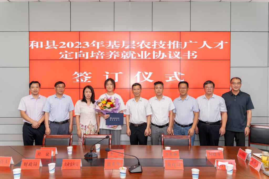7月24日,校党委副书记、院长李震,校党委委员、副院长李升和一行赴马鞍山市和县参加2023年和县基层农技推广人才定向培养就业协议签约仪式,并为我校2023年录取新生现场签发录取通知书。