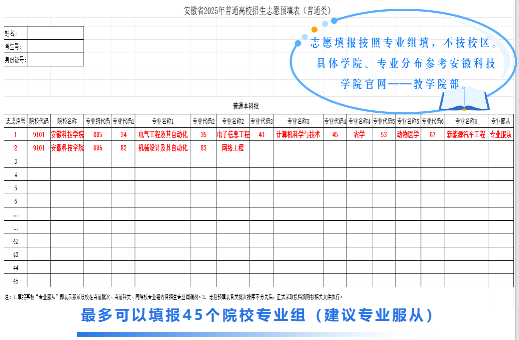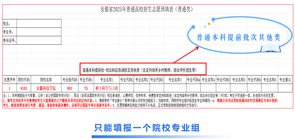 我校2025年在安徽省招生代码为9101,两个录取批次,分别是普通本科提前批(包含地方专项)、普通本科批。为方便广大考生填报志愿,以安徽省各批次志愿预填表为例,图解志愿填报。安徽省外考生请关注各省份教育考试官方机构提供的志愿报考参考指南,拼搏平台_拼搏网页版省外招生代码见本省报考指导书。