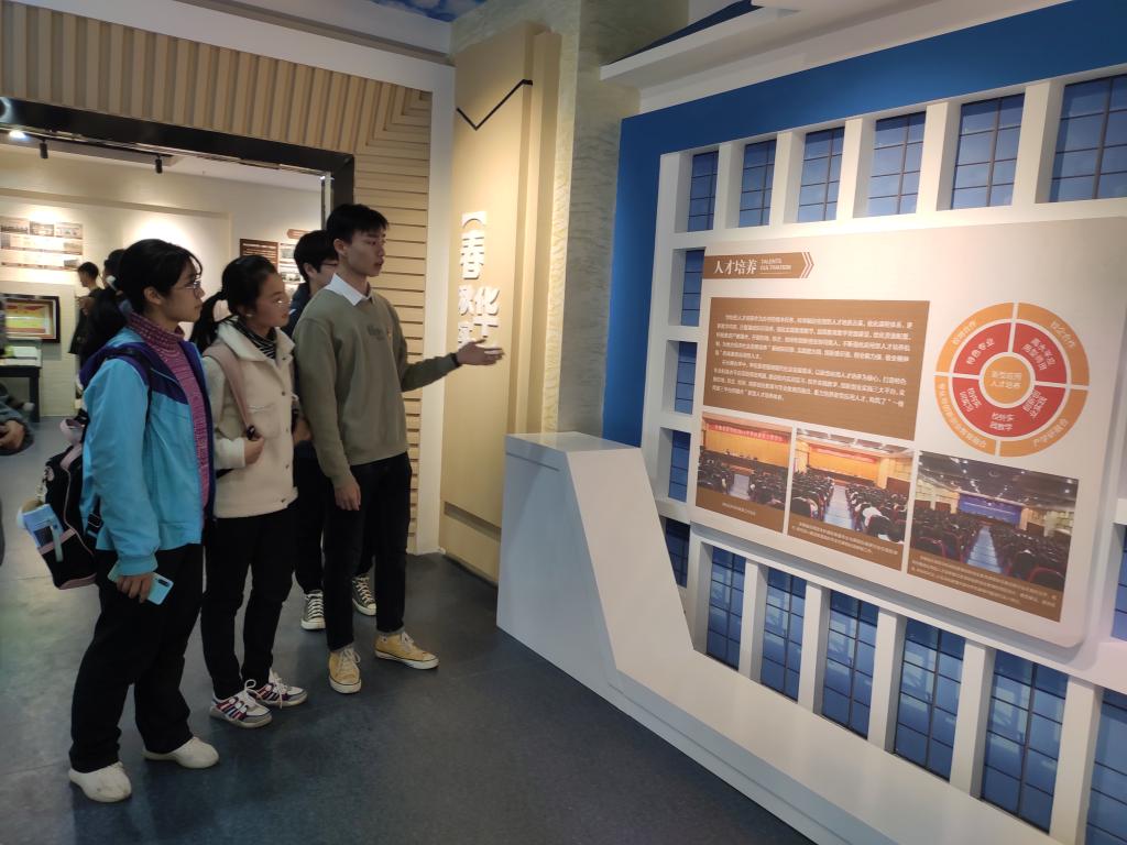 国以史为鉴,校以史明志。校史馆以实物、图片、文字、影像等展示学校历史与成就。在讲解员的带领下,同学们相继走进了“序厅”、“峥嵘岁月”、“春华秋实”、“继往开来”四个专题展区。四个专题展区深刻地呈现了我校的美好过往,再现了我校70年的风雨沧桑。70年的栉风沐雨,一代代安科人薪火相传、砥砺奋进,历经一系列的风雨变迁,成就了今天的拼搏平台_拼搏网页版。面对我校当今所取得的一系列成就,同学们纷纷露出了自豪的微笑,并发声要为我校的不断发展竭尽全力。
